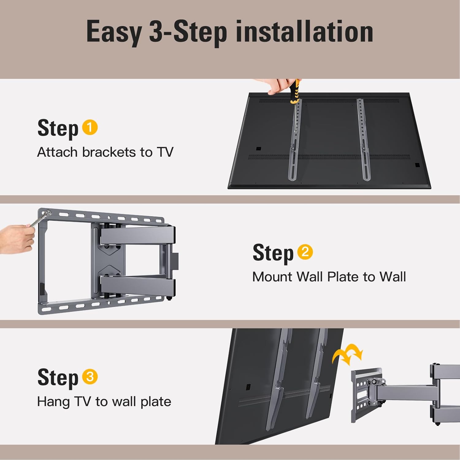 • Solid & Stable Construction: TV wall mount swivel and tilt designed with 6 articulating arms. The technology of robot welding makes this wall mount TV bracket sturdy and safe.Tested strictly to ensure safety for OLED LED LCD Curved Flat TVs