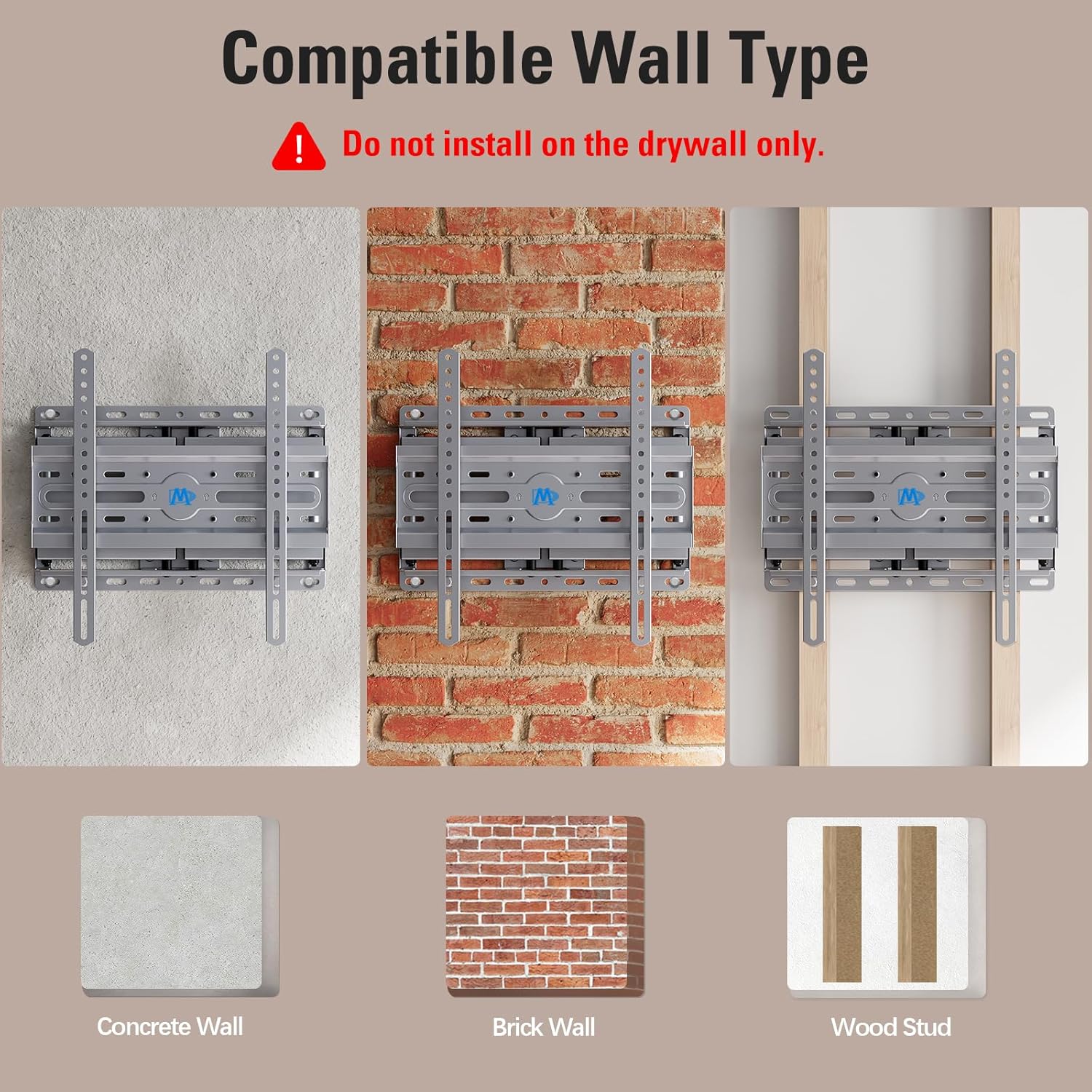 • Universal Design: TV wall mount compatible with most 32-65" TVs holding a weight of 99 LBS with MAX VESA 400 x 400mm/16" x 16" supporting 16 inches wood stud spacing. If your wood stud spacing exceeds 16 inches, please refer to the 16", 18", 24" wood stud full motion TV mount MD2380-24K